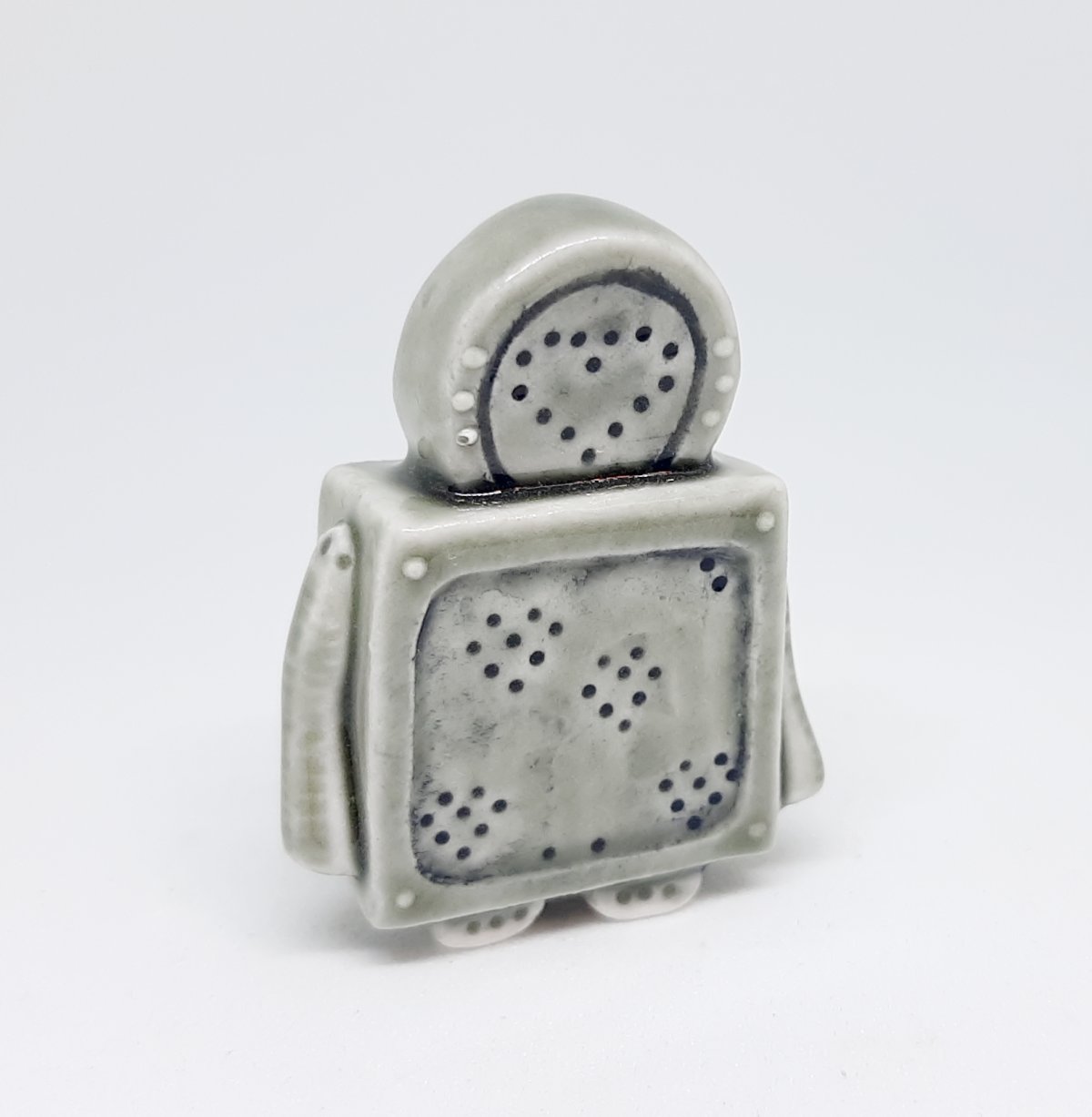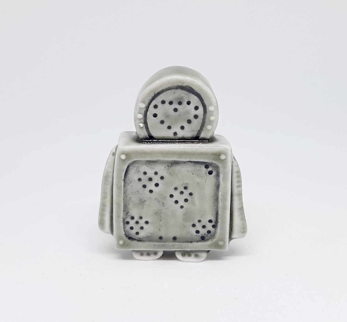 A little porcelain robot to hang out on your shelf. Waiting. Biding its time.