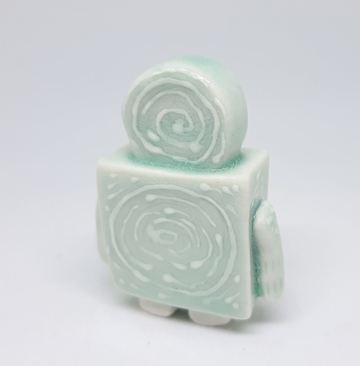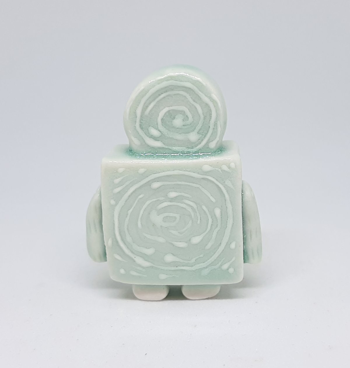 A little porcelain robot to hang out on your shelf. Waiting. Biding its time.
