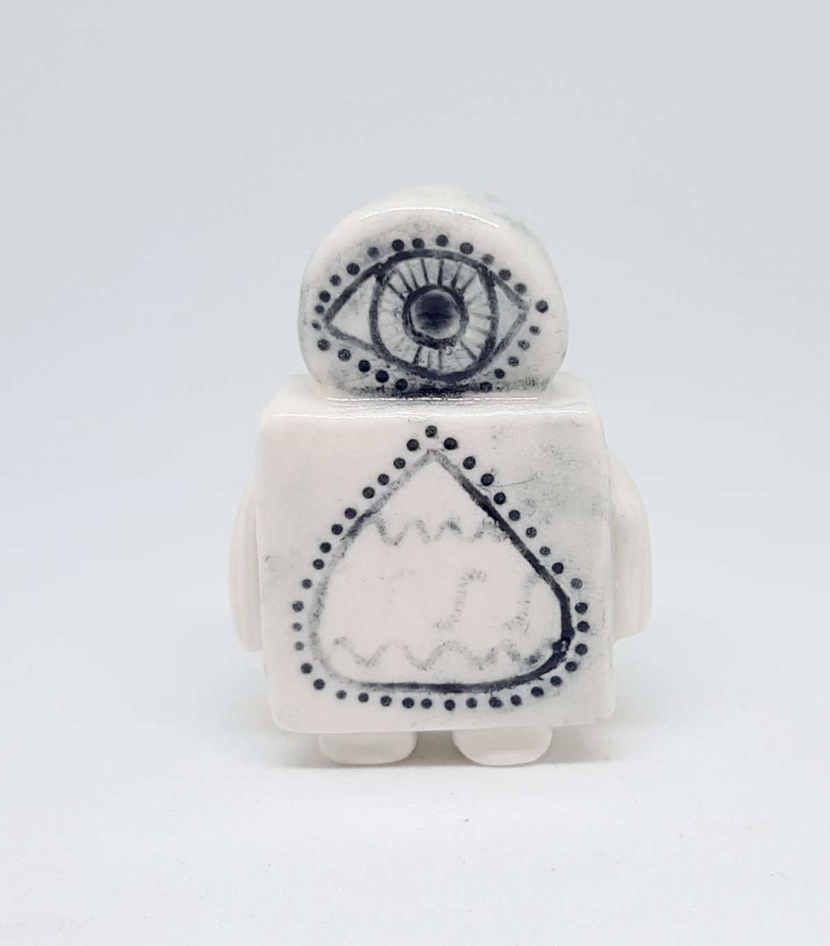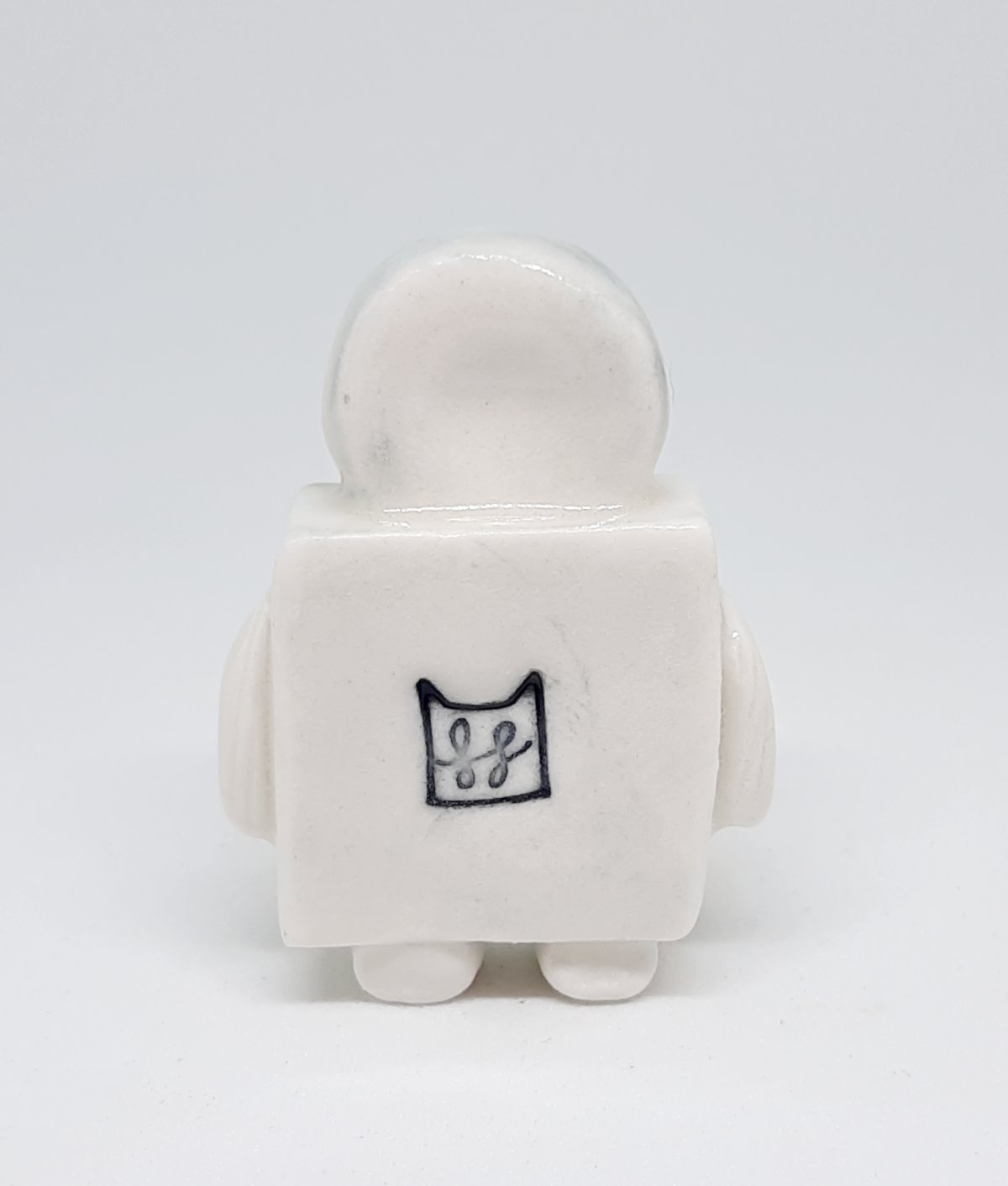 A little porcelain robot to hang out on your shelf. Waiting. Biding its time.