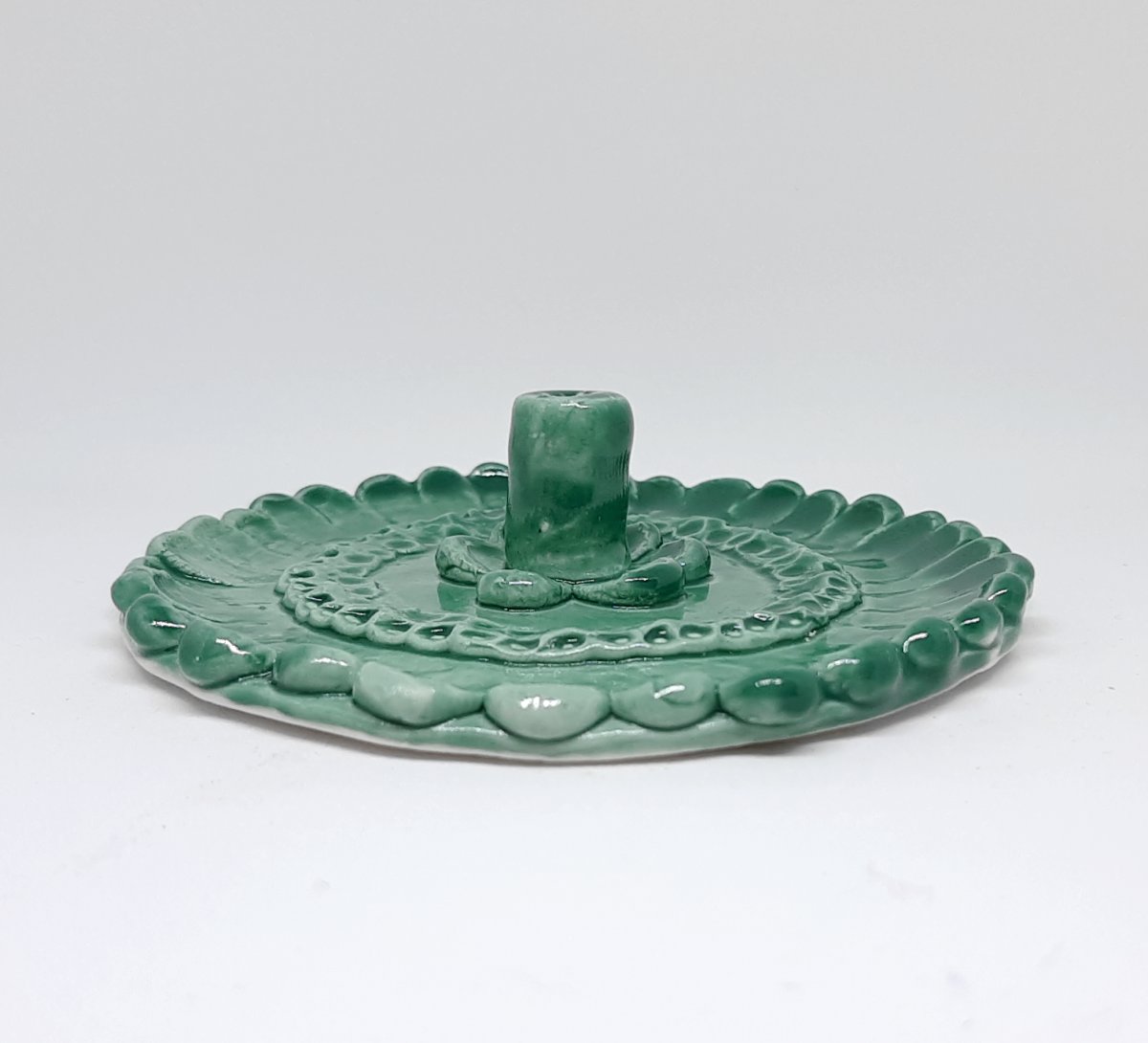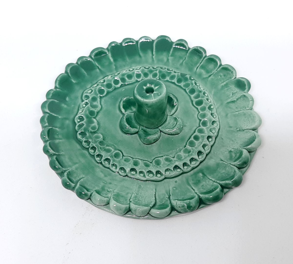 A pretty green floral incense holder.
