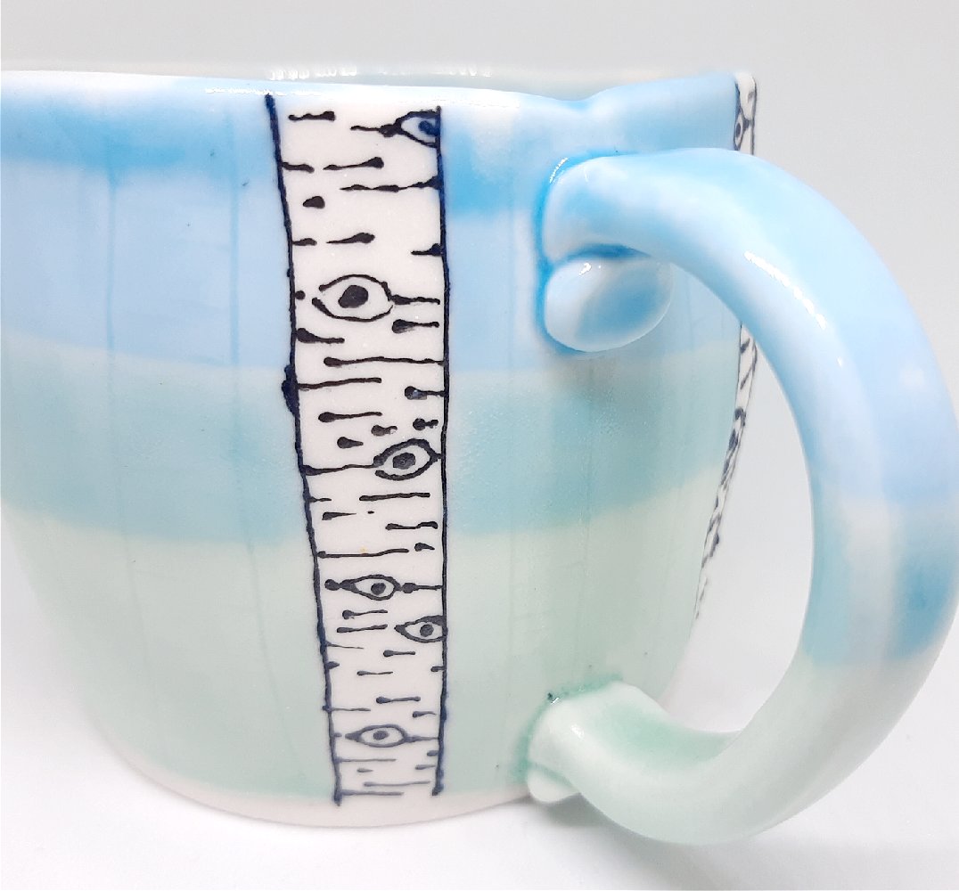 A mug that transports you to a delightful chill forest, if you don't mind being stared at by sagacious trees.